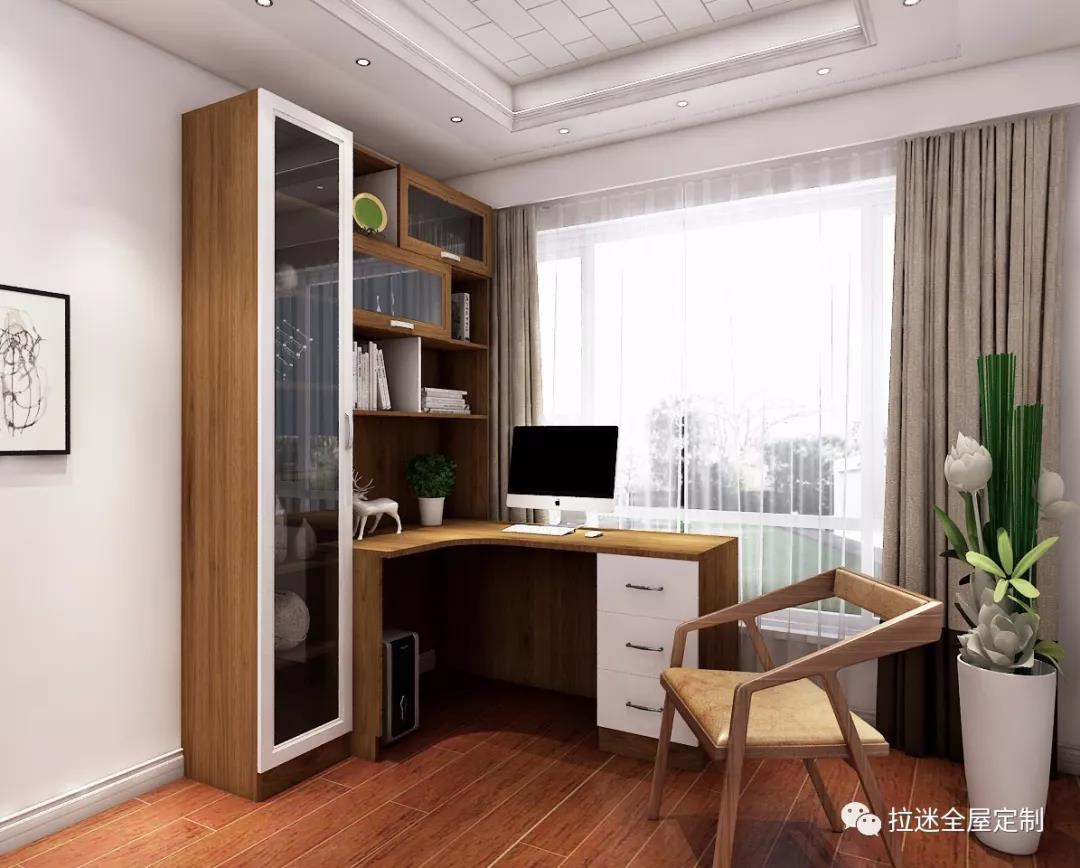 一般的定制書桌柜,多以轉角式構成“L”型,充分利用轉角位空間,為書柜增添辦公區。